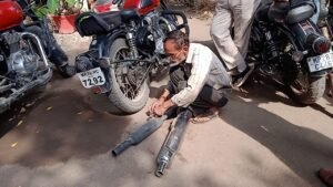 पुलिस ने बुलेट के साइलेंसर निकाले ..