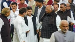 आज संसद भवन में आयोजित ‘हमारा संविधान, हमारा स्वाभिमान’ कार्यक्रम में सभी दलों के सांसद शामिल हुए। राष्ट्रपति द्रौपदी मुर्मू ने संसद के संयुक्त सत्र को संबोधित किया। इस दौरान सेंट्रल हॉल में एक अप्रत्याशित दृश्य देखने को मिला जब राहुल गांधी और ज्योतिरादित्य सिंधिया आमने-सामने आए। दोनों नेताओं ने गर्मजोशी से हाथ मिलाया और कुछ देर तक आपस में बातचीत की ,इस मुलाकात की तस्वीरें सोशल मीडिया पर वायरल हो गईं और लोगों ने इसे लेकर तरह-तरह के कयास लगाने शुरू कर दिए। हालांकि, इस मुलाकात को लेकर न तो राहुल गांधी और न ही सिंधिया ने कोई टिप्पणी की है….
