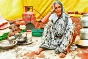 परिवार की वृद्ध सदस्य, जो उम्र और बीमारी से जूझ रही हैं, आज भी मिट्टी और ईंटों के ढेरों पर बर्तन, चटाई, और जीवन की बची-खुची वस्तुएँ लेकर गुजर-बसर कर रही हैं।